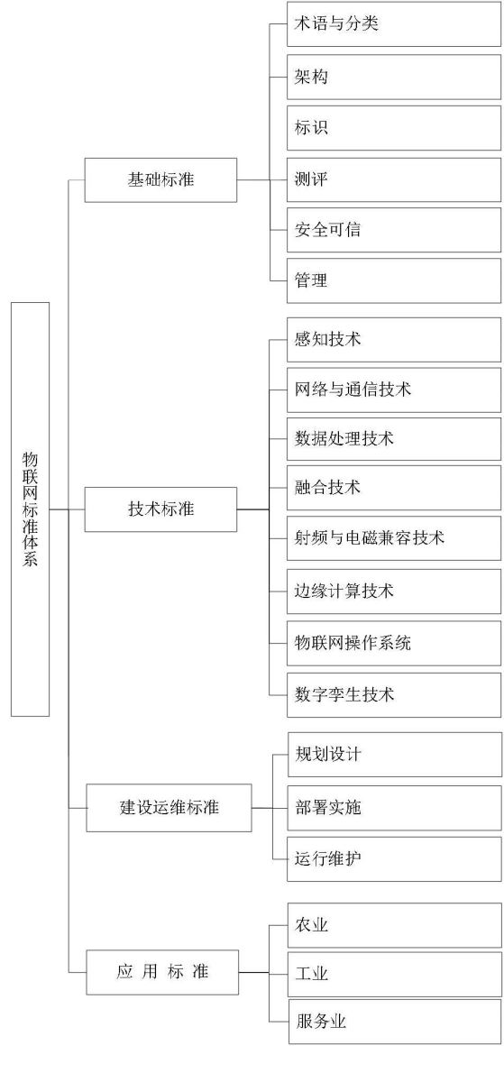 包括感知技術(shù)、網(wǎng)絡與通信技術(shù)、數(shù)據(jù)處理技術(shù)、融合技術(shù)、射頻與電磁兼容技術(shù)、邊緣計算技術(shù)、物聯(lián)網(wǎng)操作系統(tǒng)、數(shù)字孿生技術(shù)等標準。