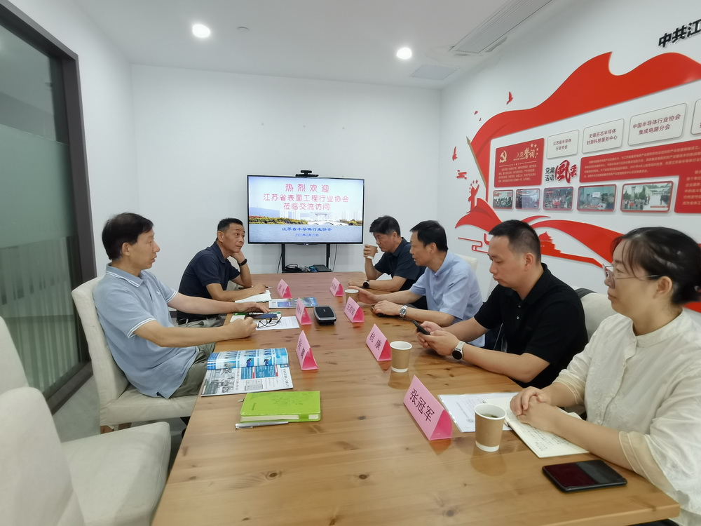 7月29日,江蘇省表面工程行業(yè)協(xié)會副會長兼秘書長王浩銘率隊一行4人到訪江蘇省半導體行業(yè)協(xié)會秘書處,開展工作交流。省半?yún)f(xié)副秘書長陶建中熱情接待了來訪客人。此次省表協(xié)到訪團隊成員包括:副會長兼秘書長王浩銘,副會長杭康,技術委員會主任、常州大學教授陳智棟,副秘書長張冠軍。